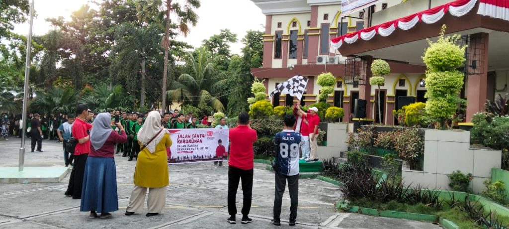 Humas Minsa – MIN 1 Pekanbaru ikut memeriahkan kegiatan Jalan Sehat Kerukunan yang ditaja oleh Kementerian Agama Kota Pekanbaru dalam rangka memeriahkan HUT RI ke 80.
